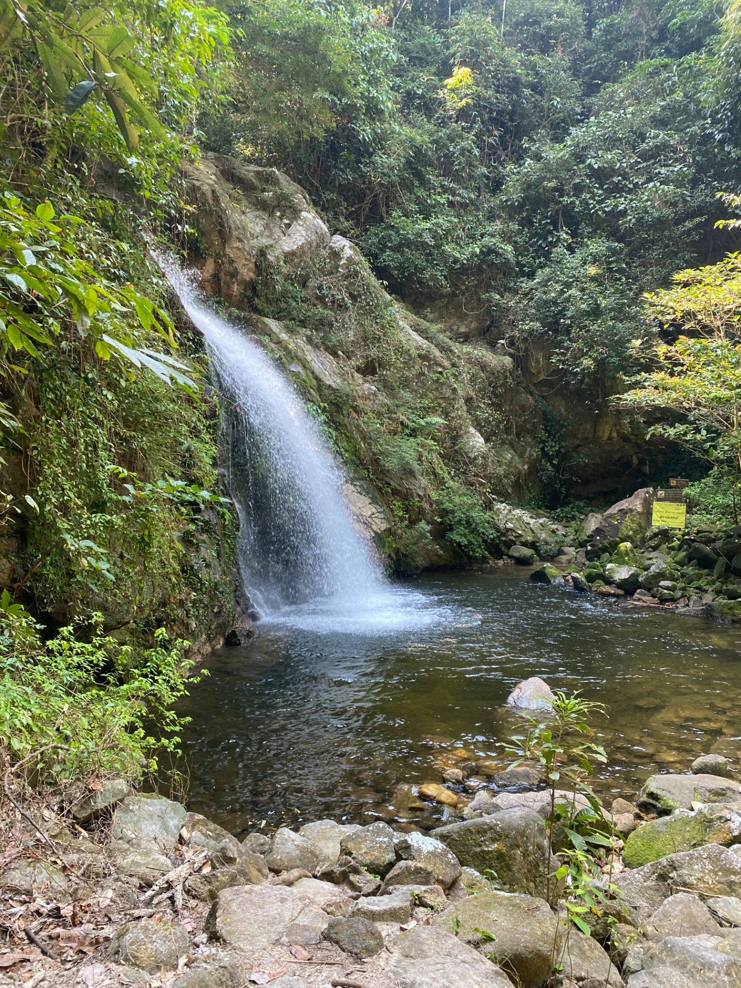 Na tomto mieste sme stretli pár ľudí, no celkovo bol vodopád takmer prázdny. Po väčšinu času sme sa kúpali úplne sami, čo pridalo na atmosfére – ticho džungle, zvuk vody a pocit, že máme tento kút prírody len pre seba.
